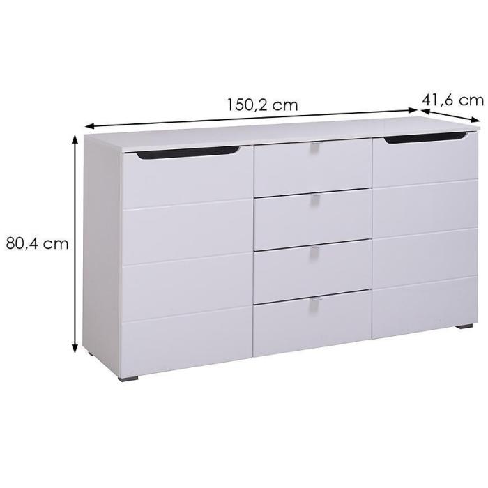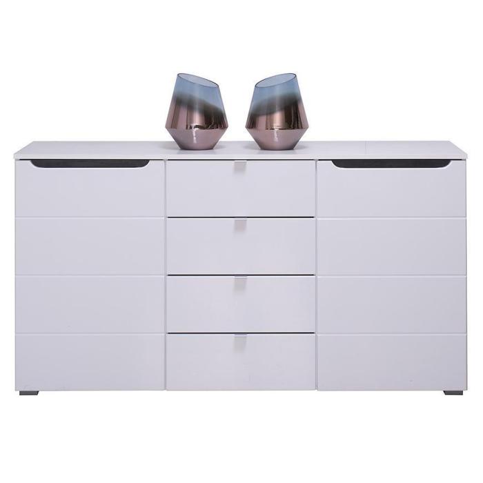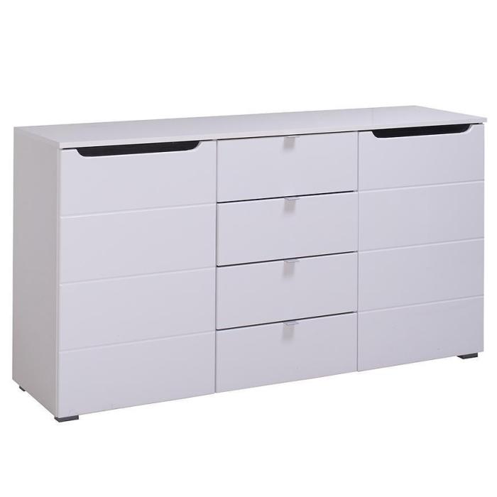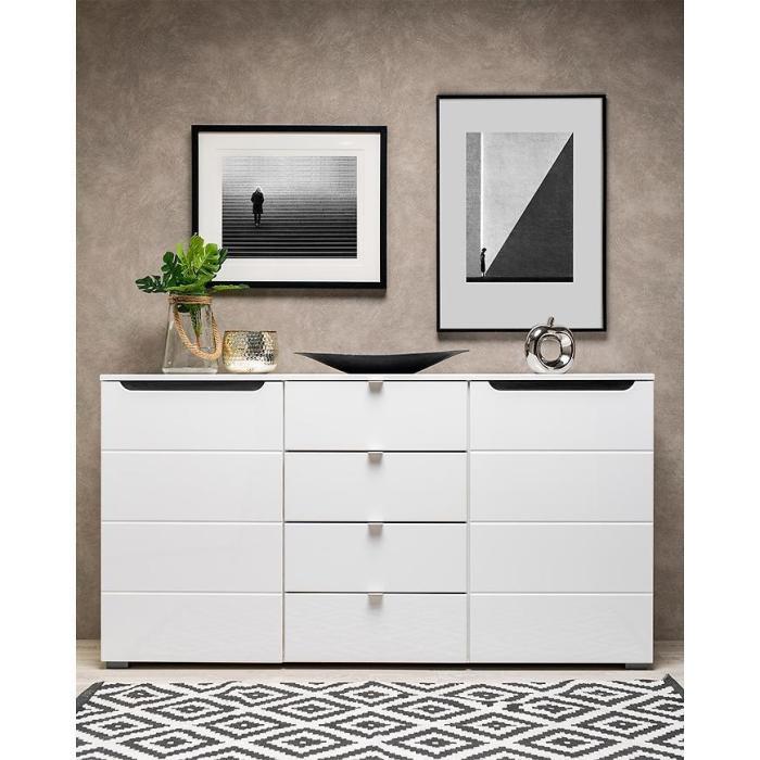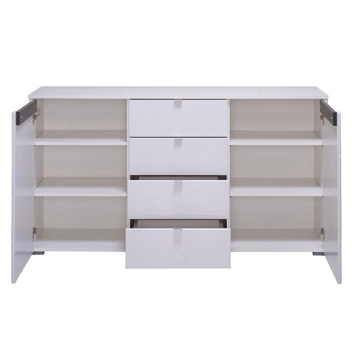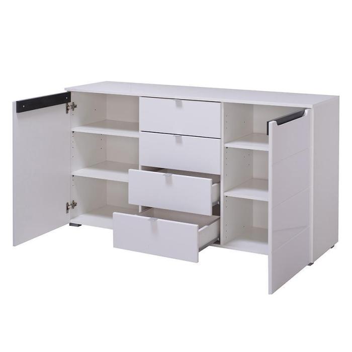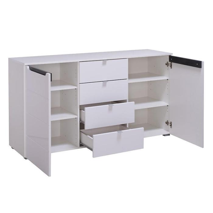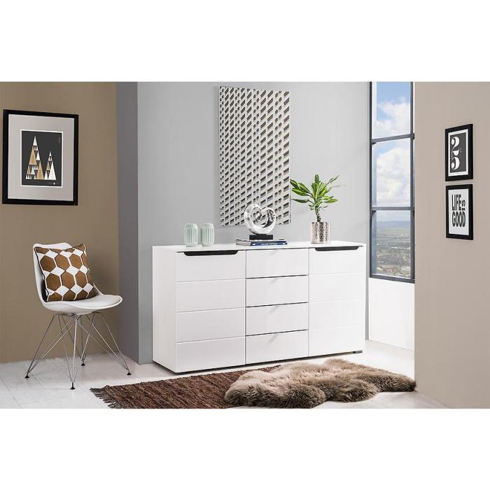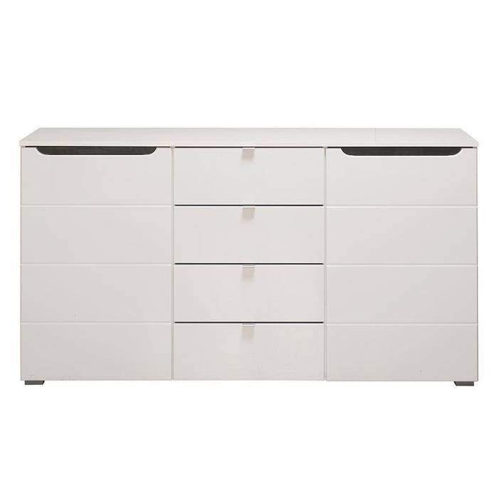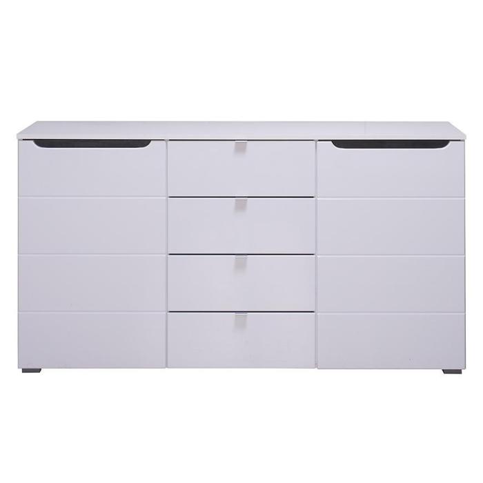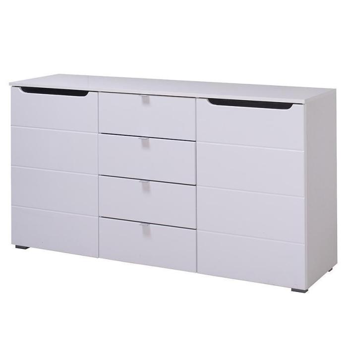 Komoda KARL to doskonała propozycja do sypialni lub do przedpokoju. Doskonale sprawdzi się również w pokoju dziennym. Posiada cztery szuflady i dwie pojemne szafki. Wykonana w płyty wiórowej laminowanej. Komoda oferuje funkcjonalne wnętrze, a ponadto wyróżnia się nowoczesnym stylem.