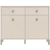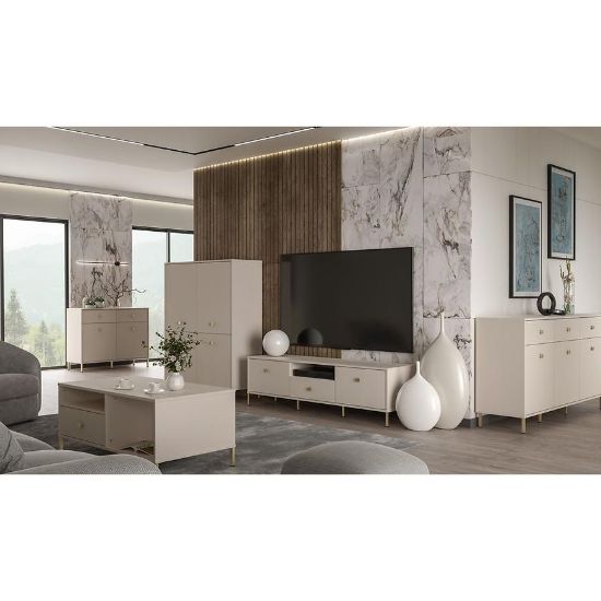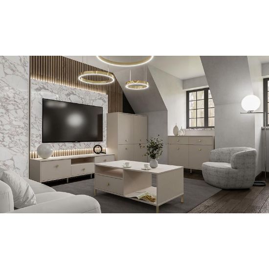 Komoda Katoro to elegancki i funkcjonalny mebel, idealny do nowoczesnych wnętrz. Jej jasne, drewnopodobne wybarwienie w połączeniu z piaskowym kolorem frontów i korpusu nadaje jej lekkości i subtelnego uroku.