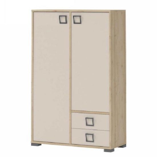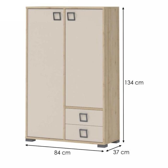 Komoda Kiki wpasuje się w każdą przestrzeń. Posiada dwie zamykane szafki oraz dwie szuflady, które pozwolą na odpowiednie zagospodarowanie. Komoda doskonale odnajdzie się w każdym pomieszczeniu, również w jadalni, pokoju młodzieżowym czy salonie.