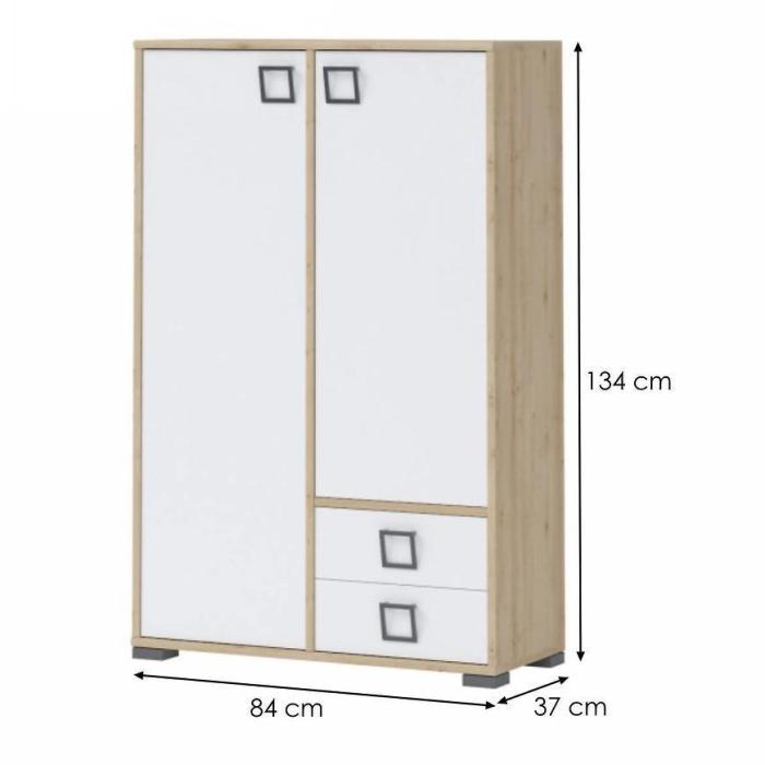Komoda Kiki wpasuje się w każdą przestrzeń. Posiada dwie zamykane szafki oraz dwie szuflady, które pozwolą na odpowiednie zagospodarowanie. Komoda doskonale odnajdzie się w każdym pomieszczeniu, również w jadalni, pokoju młodzieżowym czy salonie.