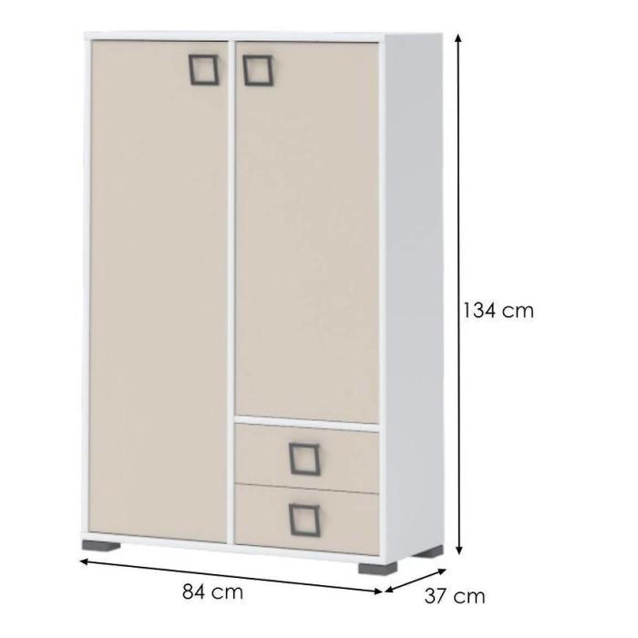 Komoda Kiki wpasuje się w każdą przestrzeń. Posiada dwie zamykane szafki oraz dwie szuflady, które pozwolą na odpowiednie zagospodarowanie. Komoda doskonale odnajdzie się w każdym pomieszczeniu, również w jadalni, pokoju młodzieżowym czy salonie.