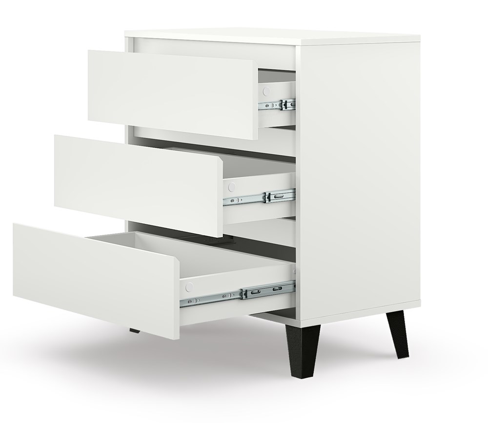 Komoda Koni to nie tylko praktyczne rozwiązanie do przechowywania, ale także element, który dodaje stylu i elegancji każdemu pomieszczeniu. Jej trzy pojemne szuflady na prowadnicach kulkowych zapewniają doskonałe miejsce na przechowywanie różnorodnych przedmiotów, począwszy od ubrań po drobne akcesoria.
