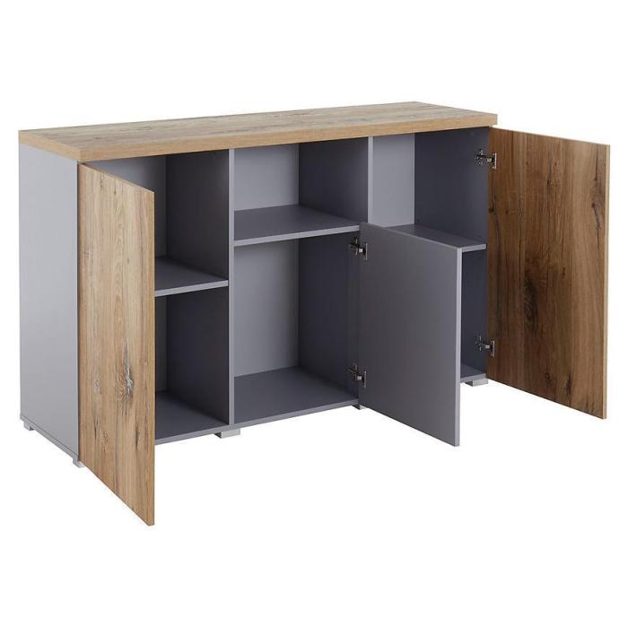 Komoda Kora wpasuje się w każdą przestrzeń. Posiada trzy zamykane szafki, które pozwolą na odpowiednie zagospodarowanie. Komoda doskonale odnajdzie się w każdym pomieszczeniu, również w jadalni czy salonie.