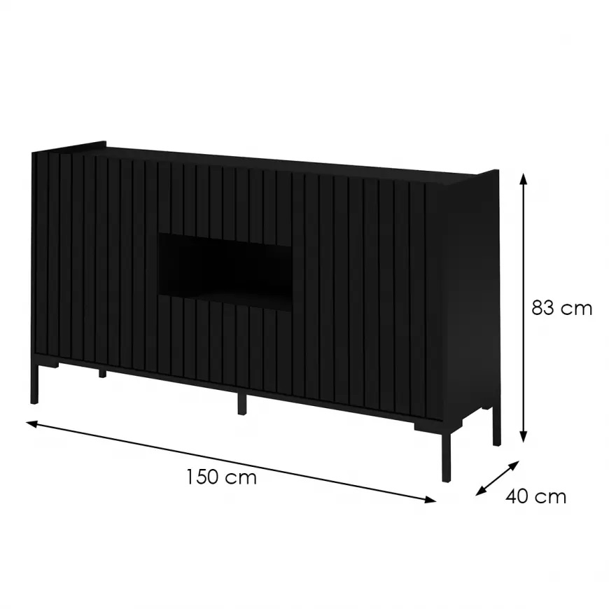 Doskonałym wyborem do salonu lub pokoju dziennego będzie komoda w kolorze czarnym z serii Lando- materiał wykonania to płyta wiórowa laminowana. Komoda posiada drzwiczki i szuflady, dzięki czemu ma łatwy dostęp do wnętrza. Komoda dopełni również wystrój pokoju lub innego pomieszczenia, stanowiąc wygodne miejsce do przechowywania mniejszych i większych rzeczy. Mebel do samodzielnego montażu.