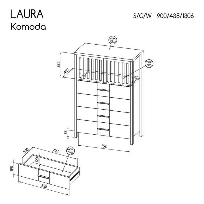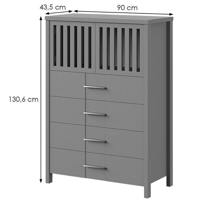 Komoda Laura w kolorze antracyt to przede wszystkim nowoczesność i funkcjonalność w jednym. Mebel doskonale sprawdzi się w każdym salonie. Materiał wykonania to drewno. Komoda posiada dwie szafki i cztery szuflady dzięki czemu ma łatwy dostęp do wnętrza. Wygląd mebli jest nowoczesny, a zarazem uniwersalny. Mebel będzie pasował do wielu pomieszczeń jak np. jadalni czy pokoju dziennego. Meble jest bardzo pojemny, dlatego sprawdzi się w każdym pomieszczeniu - zarówno w sypialni, pokoju dziennym, młodzieżowym, czy też salonie. Mebel do samodzielnego montażu.