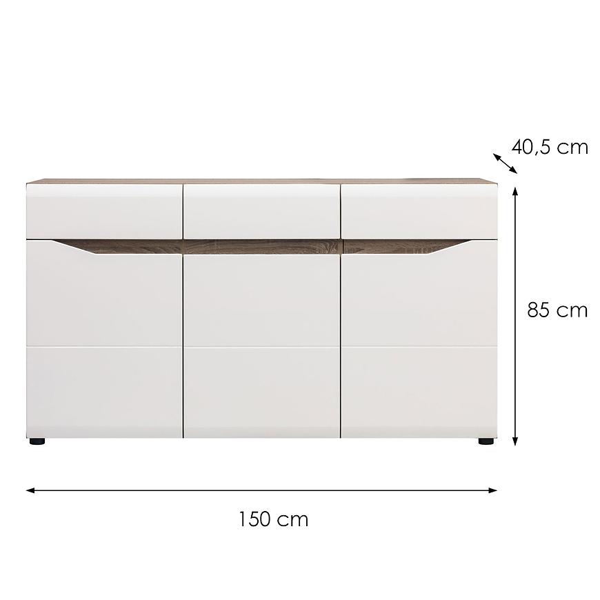 Komoda Lionel Li03 Dąb S./Biały to nowoczesny i funkcjonalny mebel, który doskonale wpasuje się w eleganckie wnętrza. Połączenie ciepłego odcienia dębu sonoma z białymi frontami nadaje jej stylowy i uniwersalny charakter. Pojemne szafki i szuflady zapewniają wygodne przechowywanie odzieży, dokumentów lub innych przedmiotów. Idealna do salonu, sypialni lub przedpokoju, łącząc estetykę z praktycznością.