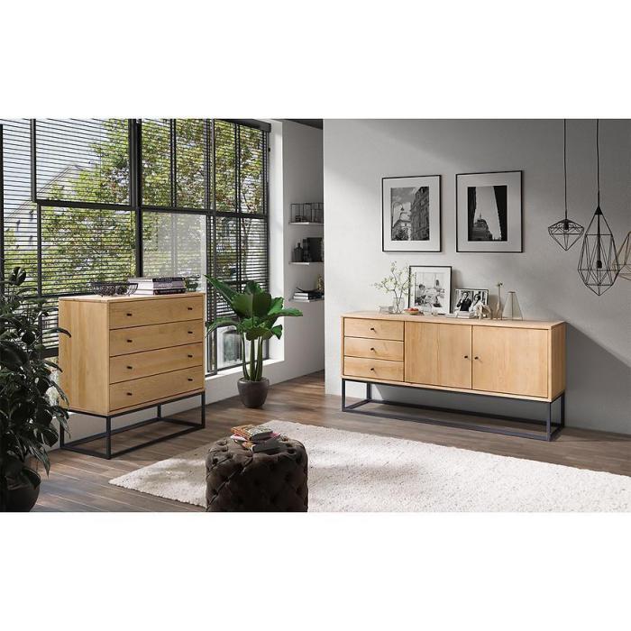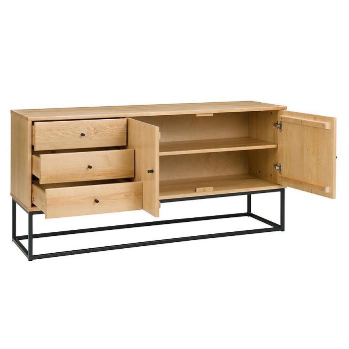 Komoda Logan w kolorze sosna to przede wszystkim nowoczesność i funkcjonalność w jednym. Mebel doskonale sprawdzi się w każdym salonie. Materiał wykonania to drewno/płyta pilśniowa. Komoda posiada trzy szuflady i dwie szafki dzięki czemu ma łatwy dostęp do wnętrza. Wygląd mebli jest loftowy, a zarazem uniwersalny. Mebel będzie pasował do wielu pomieszczeń jak np. jadalni czy pokoju dziennego. Meble jest bardzo pojemny, dlatego sprawdzi się w każdym pomieszczeniu - zarówno w sypialni, pokoju dziennym, młodzieżowym, czy też salonie. Mebel do samodzielnego montażu.