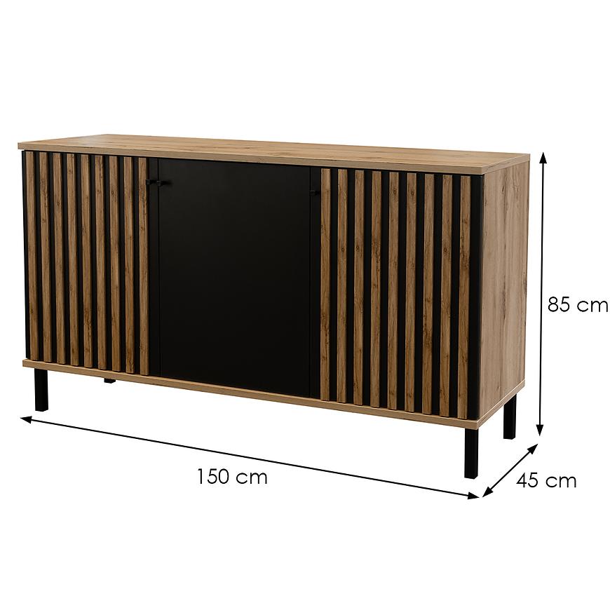 Dla tych, którzy cenią sobie połączenie funkcjonalności i stylu, komoda London D3 w kolorze dąb wotan/czarny jest idealnym wyborem. Niech stanie się centralnym punktem Twojego salonu, sypialni czy jadalni, dodając wnętrzu wyjątkowego charakteru i elegancji każdego dnia.