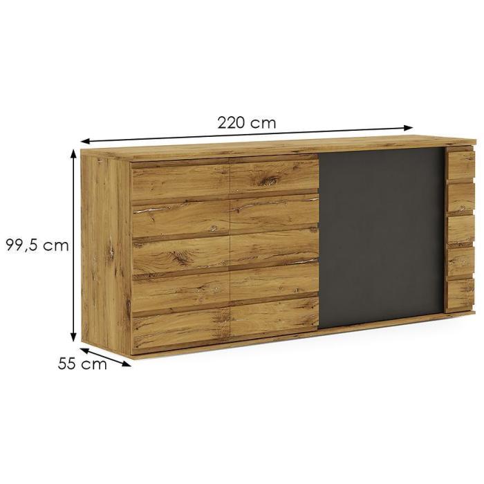 Komoda Miro w kolorze dąb bijoux to przede wszystkim nowoczesność i funkcjonalność w jednym. Mebel doskonale sprawdzi się w każdym salonie. Materiał wykonania to płyta wiórowa laminowana. Komoda posiada trzy szafki dzięki czemu ma łatwy dostęp do wnętrza. Wygląd mebli jest nowoczesny, a zarazem uniwersalny. Mebel będzie pasował do wielu pomieszczeń jak np. jadalni czy pokoju dziennego. Meble jest bardzo pojemny, dlatego sprawdzi się w każdym pomieszczeniu - zarówno w sypialni, pokoju dziennym, młodzieżowym, czy też salonie. Mebel do samodzielnego montażu.