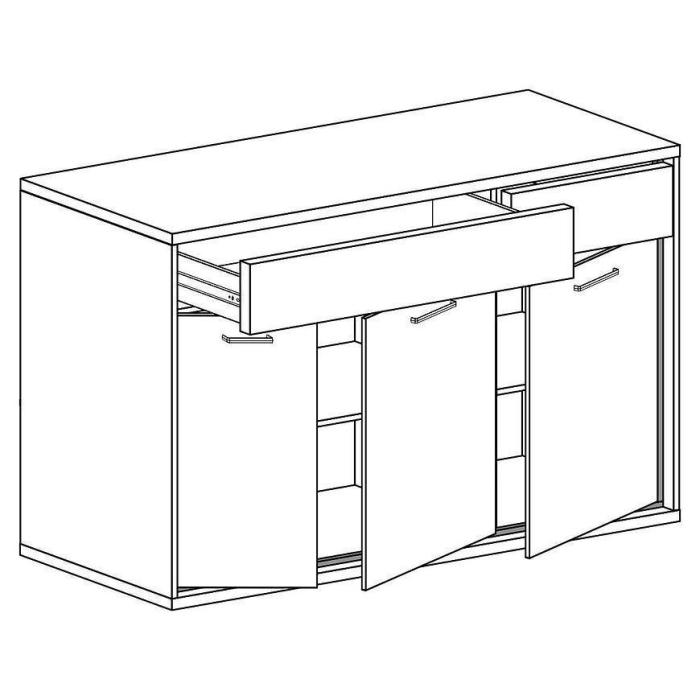 Komoda Mediolan to połączenie elegancji, stylu i funkcjonalności. Produkty z kolekcji Mediolan będą pasowały do salonu, pokoju dziennego lub do sypialni. Wpasują się w wiele aranżacji w nowoczesnych wnętrzach jak również we wnętrzach klasycznych. Szafka posiada szuflady i drzwiczki dzięki czemu ma łatwy dostęp do wnętrza oraz odpowiednią przestrzeń do przechowywania odzieży lub innych przedmiotów. Do kompletu można dokupić inne meble z kolekcji.