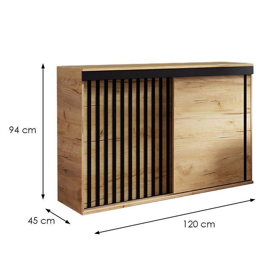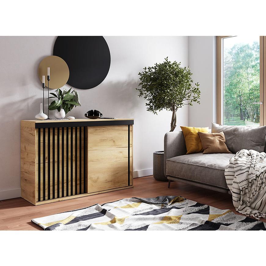 Komoda Malani to wyjątkowy mebel, który nie tylko doskonale spełnia swoją funkcję przechowywania, ale także nadaje wnętrzu wyjątkowego charakteru. Dzięki połączeniu odcienia dąb craft z elementami w kolorze czarnym, ta komoda staje się prawdziwym dziełem sztuki.