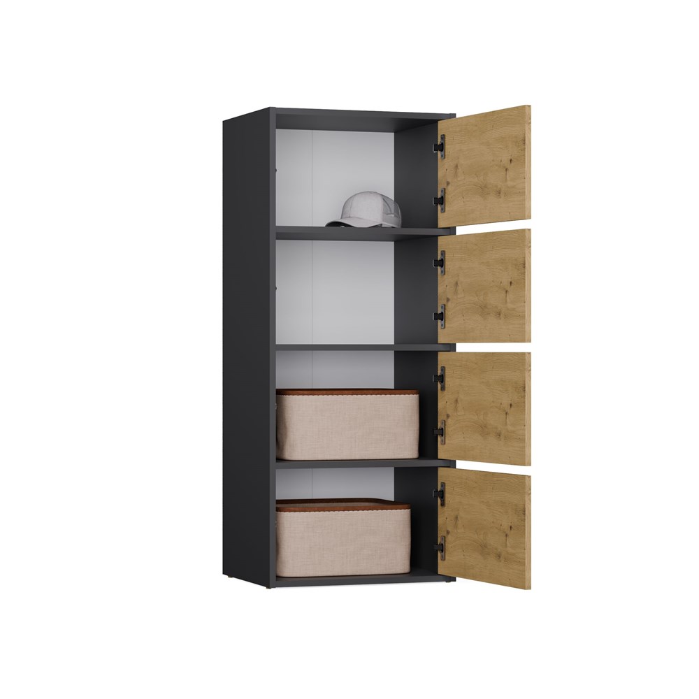 Komoda Malwa 4D antracyt/dąb artisan to nowoczesny i stylowy mebel, który doskonale sprawdzi się w każdym wnętrzu – od przedpokoju i salonu, po sypialnię, pokój dziecka czy domowe biuro. Jej minimalistyczny design w klasycznym białym kolorze pasuje do różnych aranżacji, wprowadzając do pomieszczenia lekkość i elegancję.