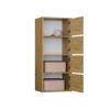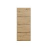 Wyposażona w cztery drzwi z pojemnymi półkami, komoda zapewnia maksymalne wykorzystanie przestrzeni, ułatwiając organizację i przechowywanie niezbędnych przedmiotów. Bezuchwytowe fronty z systemem TIP-ON umożliwiają wygodne otwieranie na dotyk, podkreślając nowoczesny charakter mebla. Konstrukcja wykonana z laminowanej płyty wiórowej o grubości 16 mm gwarantuje trwałość, odporność na zarysowania oraz łatwość w pielęgnacji. Dodatkowo stalowe zawiasy z możliwością precyzyjnej regulacji zapewniają płynne i ciche użytkowanie.