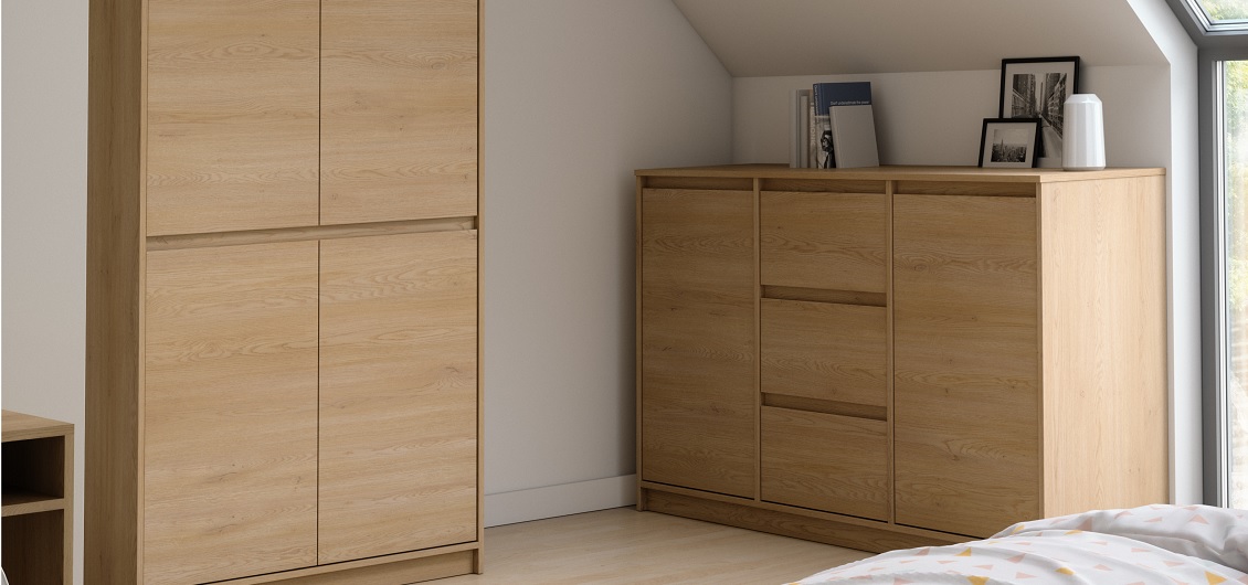 Kolekcja Manami łączy elegancki wygląd z trwałością i funkcjonalnością. Od wygodnych łóżek, przez pojemne szafy, po praktyczne komody i stoliki nocne – każdy element został zaprojektowany z myślą o codziennym użytkowaniu. kolekcja Manami pozwala stworzyć sypialnię komfortową, uporządkowaną i nowoczesną.