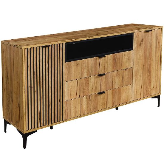 Wyposażona w dwie zamykane szafki oraz trzy pojemne szuflady, komoda Margo 2D3S zapewnia wygodne miejsce na przechowywanie zarówno większych przedmiotów, jak i drobniejszych akcesoriów, od ubrań po dokumenty. Drzwi ukrywają przestronne półki, idealne na większe rzeczy, natomiast szuflady umożliwiają szybki dostęp do najpotrzebniejszych drobiazgów. Funkcjonalność tej komody idzie w parze z estetyką – wybarwienie craft złoty doskonale oddaje naturalny wygląd drewna, wprowadzając do wnętrza przytulny, a zarazem nowoczesny klimat.