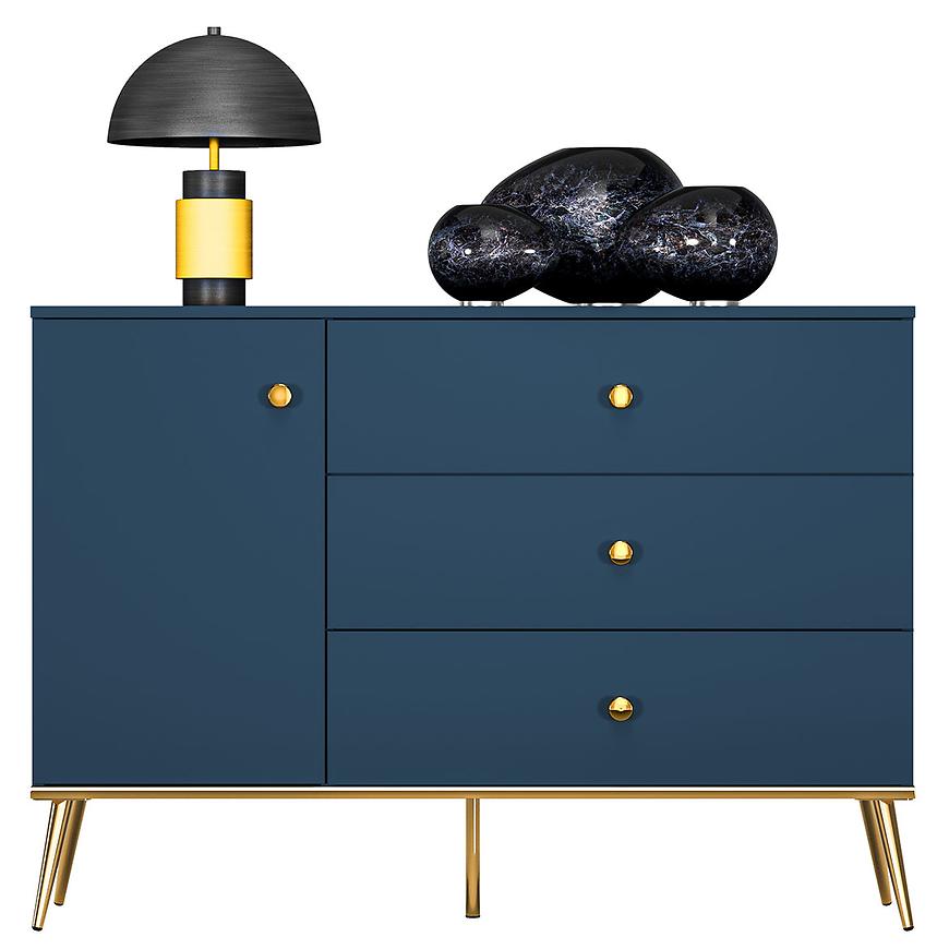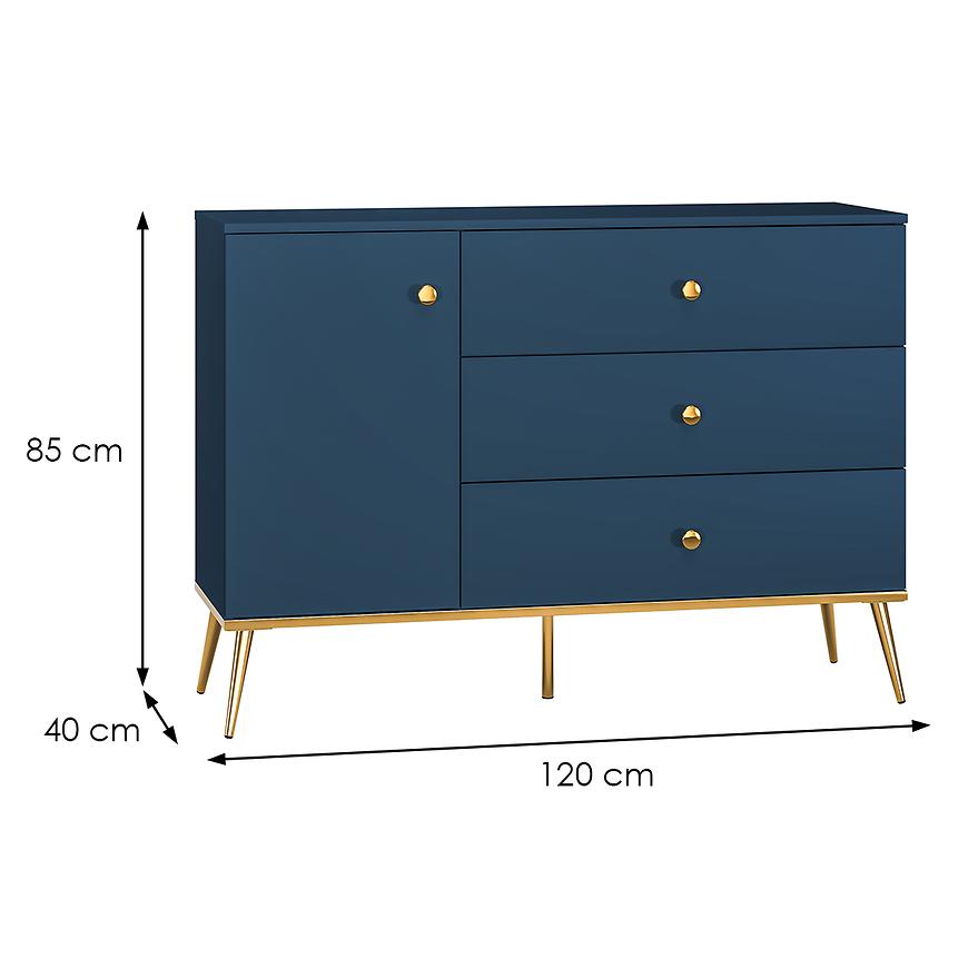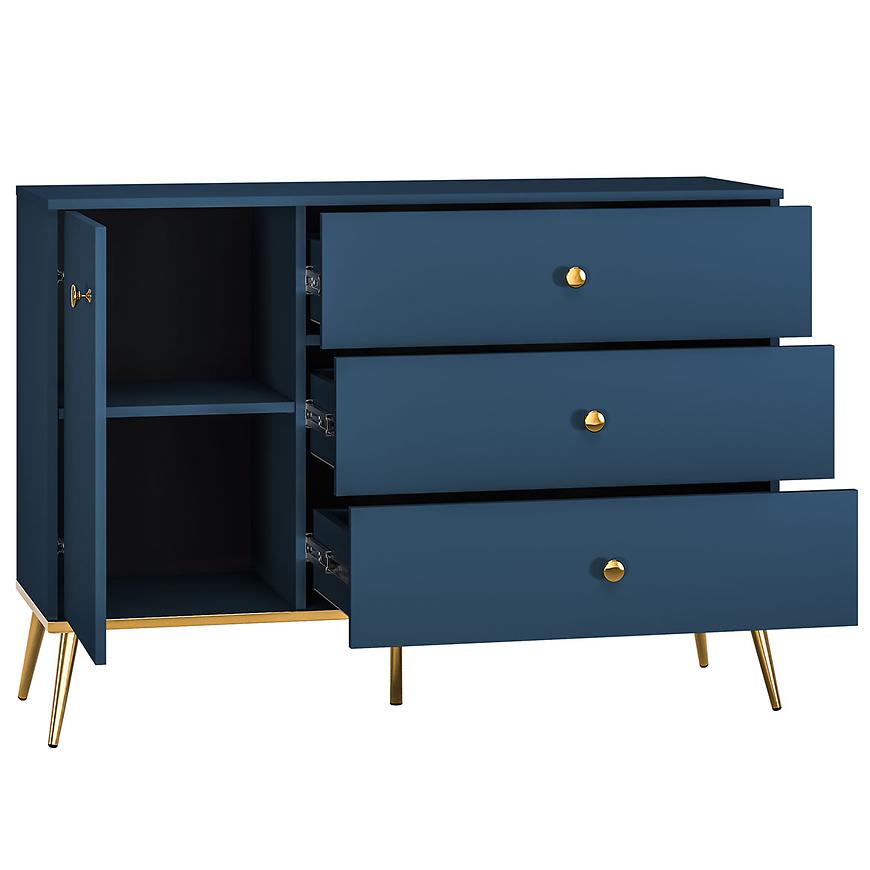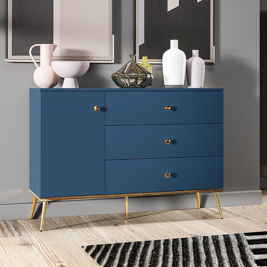 Komoda Marine to stylowy i funkcjonalny element wyposażenia wnętrz, który wprowadzi do Twojego domu nowoczesny, elegancki akcent. Utrzymana w głębokim odcieniu ciemnego błękitu, komoda ta doskonale łączy w sobie estetykę i praktyczność.
