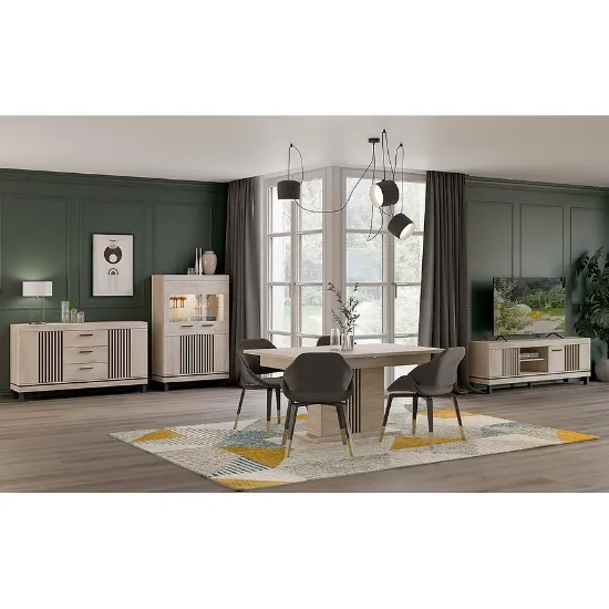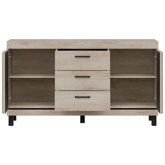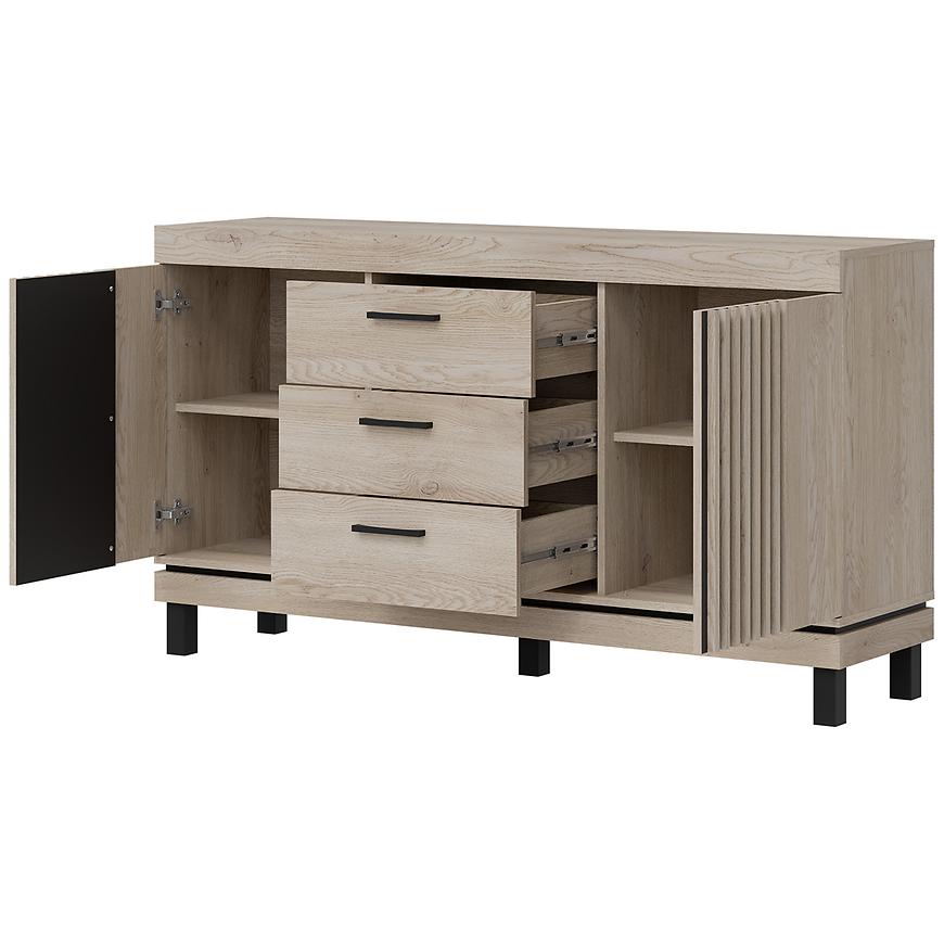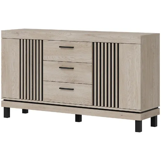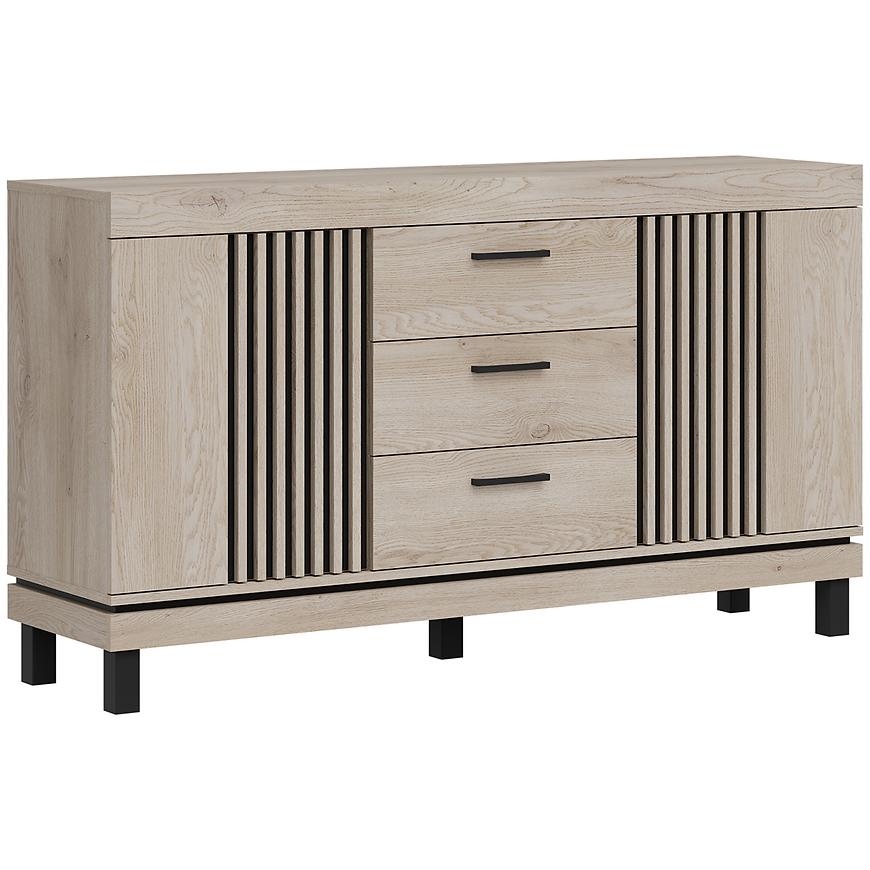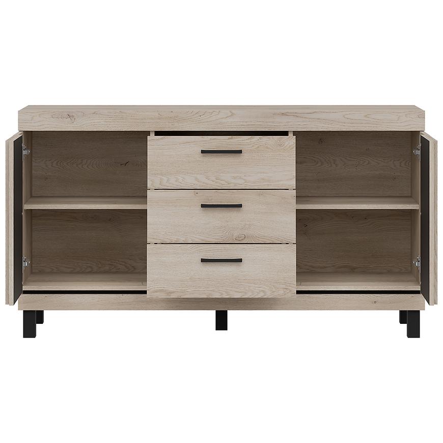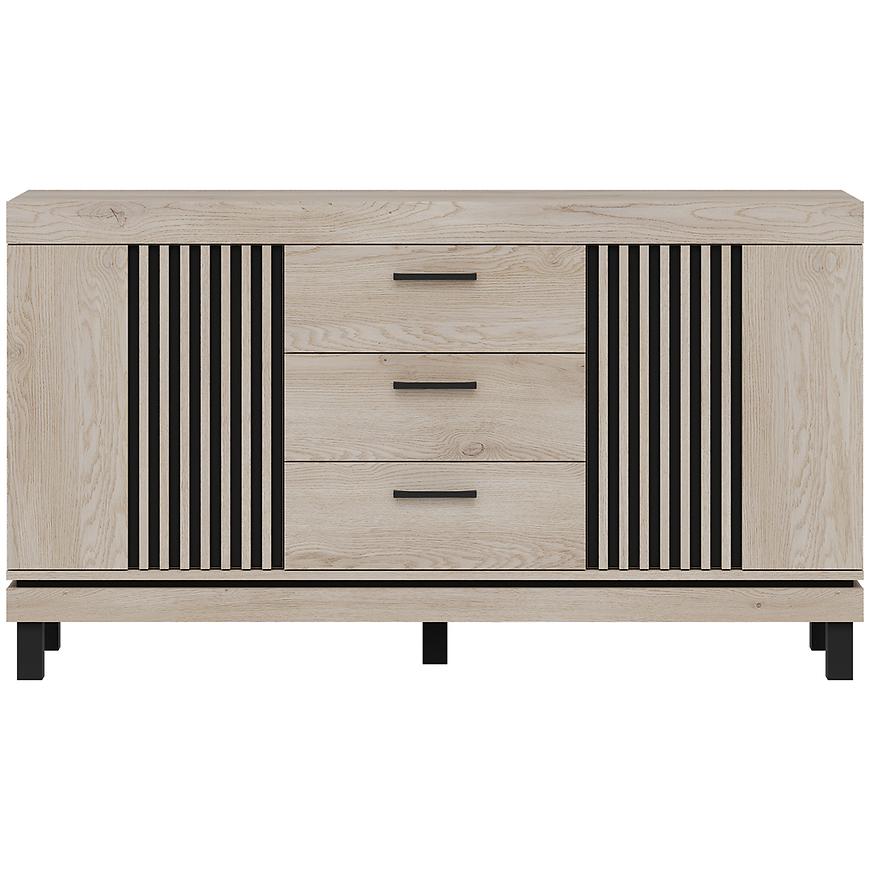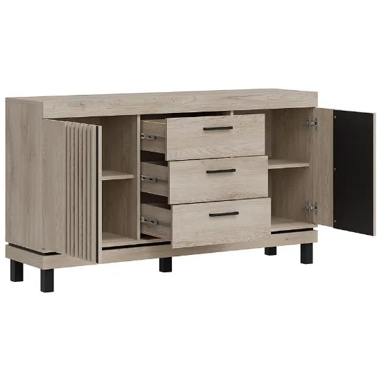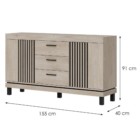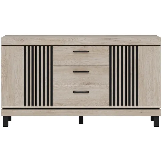 Komoda Mati to stylowy i praktyczny mebel, który doskonale wpisuje się w nowoczesne wnętrza. Dwudrzwiowa konstrukcja z dodatkowymi trzema szufladami zapewnia dużą ilość miejsca do przechowywania, pomagając utrzymać porządek w salonie, sypialni lub gabinecie.