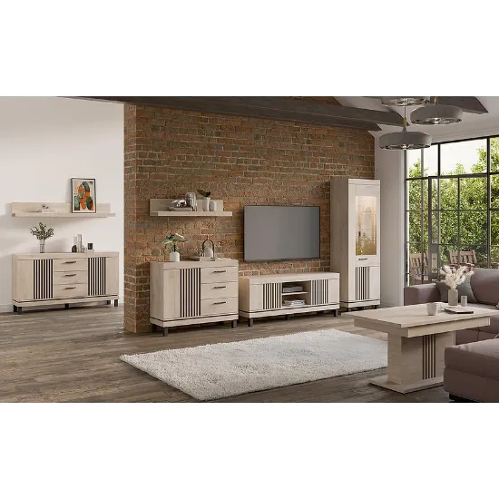 Połączenie dekoru dąb cremona cotta z głęboką czernią nadaje komodzie elegancki i ponadczasowy wygląd, podkreślony matowym wykończeniem. Solidna konstrukcja wykonana z laminowanej płyty wiórowej gwarantuje trwałość oraz odporność na codzienne użytkowanie. Kolekcja MATI to doskonały wybór dla osób poszukujących nowoczesnych i funkcjonalnych rozwiązań do swojego wnętrza.