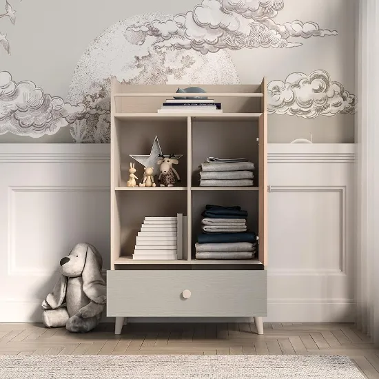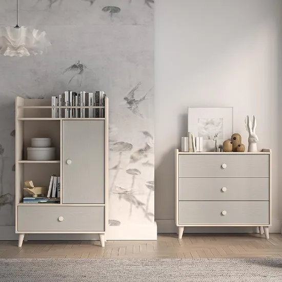 W kolekcji Mevel znajdują się różnorodne elementy – od pojemnych szaf i komód, przez regały, po biurka i łóżka. Dzięki temu można kompleksowo wyposażyć pokój dziecka, tworząc funkcjonalną, estetyczną i spójną przestrzeń. Każdy mebel został zaprojektowany tak, aby maksymalnie wykorzystać dostępną powierzchnię, zapewniając odpowiednią ilość miejsca do przechowywania.