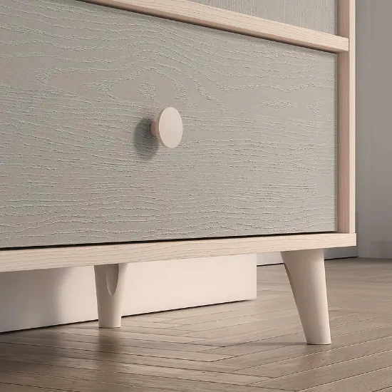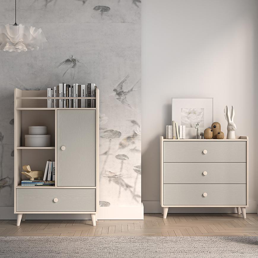 Kolekcja Mevel to propozycja dla rodziców, którzy cenią elegancję, funkcjonalność i spójny design w aranżacji pokoju dziecięcego. Utrzymana w odcieniach szarego palladu i piasku pustyni, wyróżnia się stonowaną, nowoczesną estetyką, która wprowadza do wnętrza harmonię i porządek. Matowe wykończenie frontów oraz korpusów nadaje meblom subtelny, wyrafinowany charakter.
