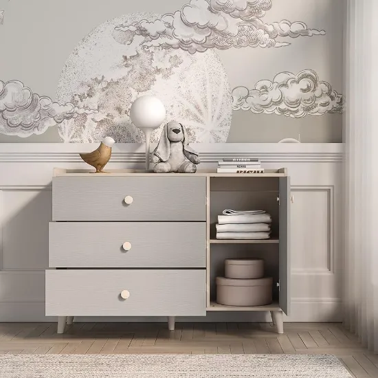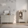 Kolekcja Mevel to propozycja dla rodziców, którzy cenią elegancję, funkcjonalność i spójny design w aranżacji pokoju dziecięcego. Utrzymana w odcieniach szarego palladu i piasku pustyni, wyróżnia się stonowaną, nowoczesną estetyką, która wprowadza do wnętrza harmonię i porządek. Matowe wykończenie frontów oraz korpusów nadaje meblom subtelny, wyrafinowany charakter.