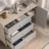 Komoda Mevel 05 Piasek Pustyni/Szary Pallad to stylowy i funkcjonalny mebel, który doskonale wpisze się w nowoczesne aranżacje wnętrz. Subtelne zestawienie ciepłego odcienia Piasku Pustyni z eleganckim Szarym Palladem tworzy harmonijną i ponadczasową kompozycję kolorystyczną.