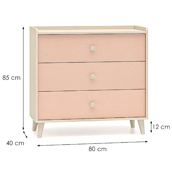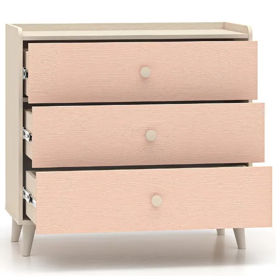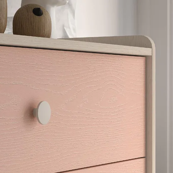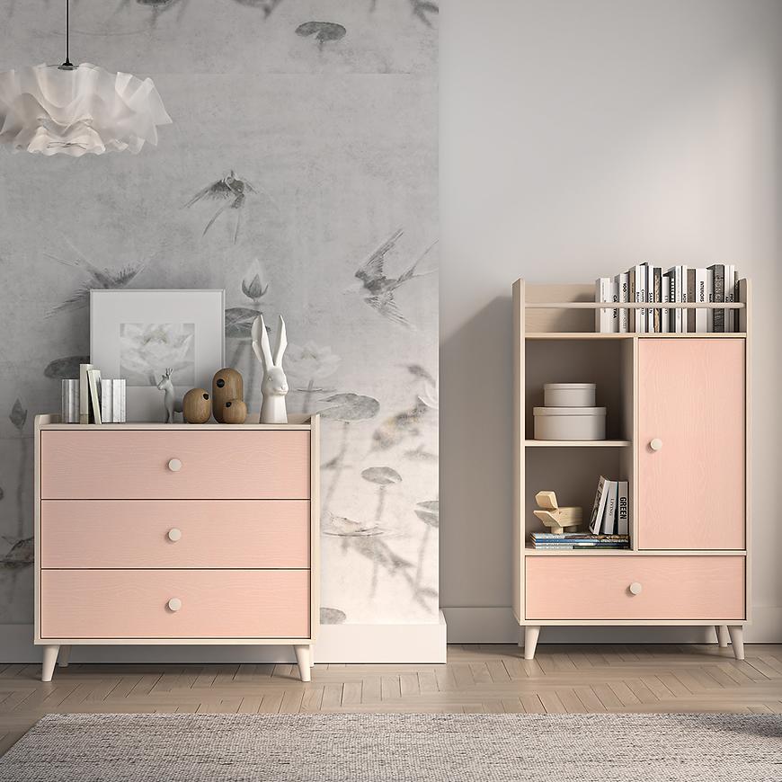 Pastelowe różowe fronty w połączeniu z piaskowym korpusem tworzą przyjazne wnętrze, które wspiera kreatywność dziecka i sprzyja wypoczynkowi. Dzięki stonowanej kolorystyce, meble będą pasować zarówno do pokoju małej dziewczynki, jak i starszego dziecka, które potrzebuje bardziej „dorosłego” otoczenia.