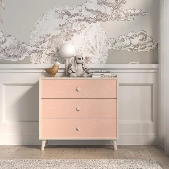 Kolekcja Mevel to połączenie subtelnej elegancji z praktycznym podejściem do aranżacji pokoju dziecięcego. Stworzona z myślą o najmłodszych, zachwyca wyważonym zestawieniem kolorów – millenial pink na frontach oraz piasek pustyni na korpusach. Dzięki matowemu wykończeniu całość prezentuje się nowocześnie, a jednocześnie przytulnie, tworząc przestrzeń sprzyjającą zarówno zabawie, jak i odpoczynkowi.