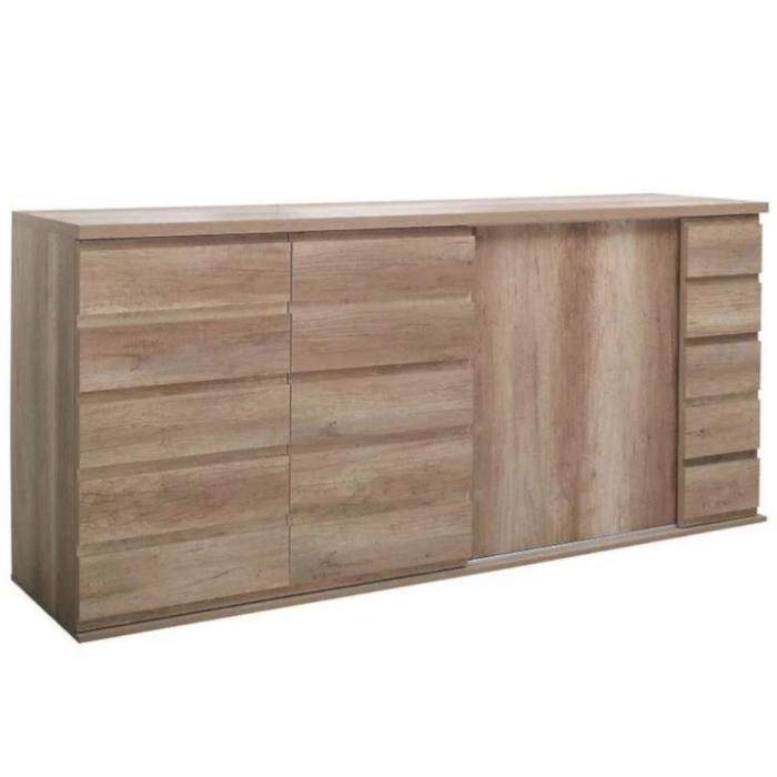 Komoda Miro to mebel idealny do sypialni czy pokoju dziennego. Kolor mebla dąb canyon wpasuje się w wiele aranżacji w nowoczesnych wnętrzach jak również we wnętrzach klasycznych. Szafka posiada drzwiczki dzięki czemu ma łatwy dostęp do wnętrza oraz odpowiednią przestrzeń do przechowywania odzieży oraz innych przedmiotów. Płyta laminowana to płyta, z której wykonano komodę. Do kompletu można dokupić inne meble z kolekcji.