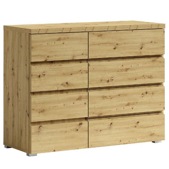 Stylowy design tej komody sprawia, że stanowi ona nie tylko praktyczne miejsce do przechowywania, ale także atrakcyjny element dekoracyjny dla Twojego wnętrza. Kombinacja jasnego drewnopodobnego wybarwienia, koloru dębu artisan i matowego wykończenia tworzy spójną i nowoczesną estetykę. Komoda Miro 45 Artisan to idealne rozwiązanie dla tych, którzy poszukują mebla, który łączy funkcjonalność z designerskim podejściem do wystroju wnętrza.