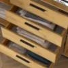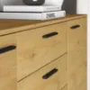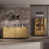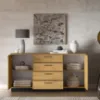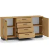W skład kolekcji Modesto wchodzą różnorodne elementy, które pozwalają na funkcjonalne zagospodarowanie przestrzeni. Komoda dwudrzwiowa z szufladami oraz komoda jednodrzwiowa z szufladami zapewniają mnóstwo miejsca do przechowywania, ułatwiając organizację przedmiotów codziennego użytku. Witryna jednodrzwiowa i witryna dwudrzwiowa z półkami pozwalają na efektowne wyeksponowanie dekoracji, książek lub szkła. Opcjonalne oświetlenie LED dostępne za dodatkową opłatą nadaje wnętrzu wyjątkowego klimatu. Półka to doskonałe miejsce na ulubione dodatki, a szafka RTV z szafkami i półkami zapewnia wygodne miejsce na sprzęt multimedialny. Całość dopełnia pojemna szafa z półką i drążkiem na ubrania, która zwiększa funkcjonalność kolekcji.