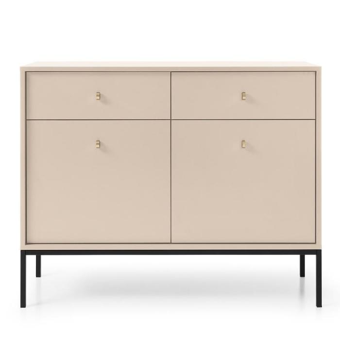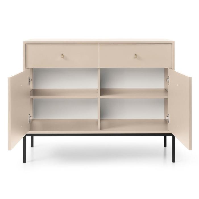 Komoda Mono w kolorze beżowym to przede wszystkim nowoczesność i funkcjonalność w jednym. Mebel doskonale sprawdzi się w każdym salonie. Materiał wykonania to płyta wiórowa laminowana. Komoda posiada dwie szuflady i dwie szafki dzięki czemu ma łatwy dostęp do wnętrza. Wygląd mebli jest loftowy, a zarazem uniwersalny. Mebel będzie pasował do wielu pomieszczeń jak np. jadalni czy pokoju dziennego. Meble jest bardzo pojemny, dlatego sprawdzi się w każdym pomieszczeniu - zarówno w sypialni, pokoju dziennym, młodzieżowym, czy też salonie. Mebel do samodzielnego montażu.