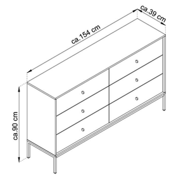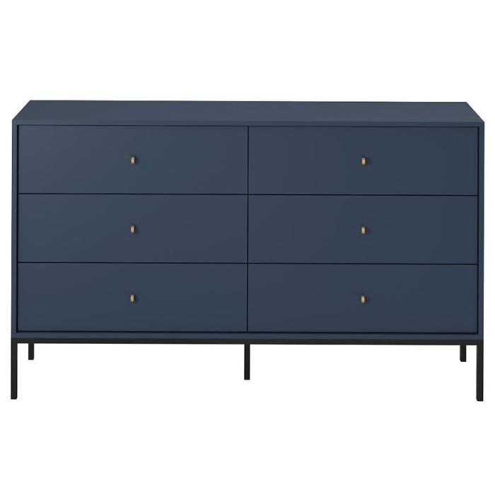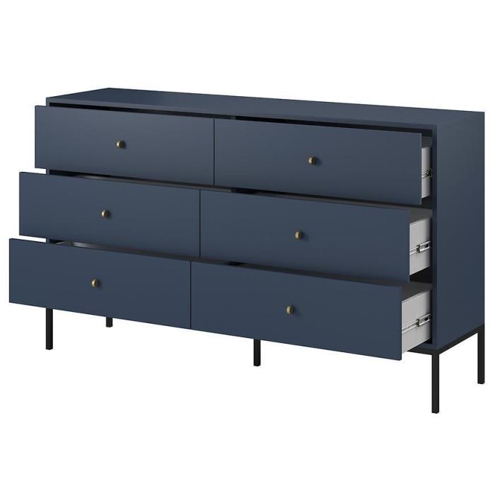 Komoda Mono w kolorze granat to przede wszystkim nowoczesność i funkcjonalność w jednym. Mebel doskonale sprawdzi się w każdym salonie. Materiał wykonania to płyta wiórowa laminowana. Komoda posiada sześć szuflad dzięki czemu ma łatwy dostęp do wnętrza. Wygląd mebli jest loftowy, a zarazem uniwersalny. Mebel będzie pasował do wielu pomieszczeń jak np. jadalni czy pokoju dziennego. Meble jest bardzo pojemny, dlatego sprawdzi się w każdym pomieszczeniu - zarówno w sypialni, pokoju dziennym, młodzieżowym, czy też salonie. Mebel do samodzielnego montażu.