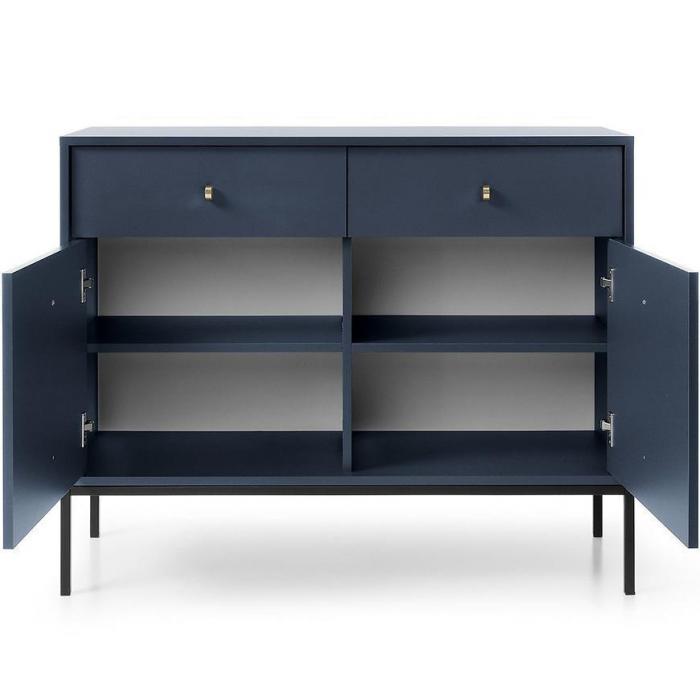 Komoda Mono to nowoczesny mebel do pokoju dziennego lub salonu. Wpasuje się w wiele aranżacji w nowoczesnych wnętrzach jak również we wnętrzach klasycznych. Szafka posiada szuflady i drzwiczki dzięki czemu ma łatwy dostęp do wnętrza oraz odpowiednią przestrzeń do przechowywania odzieży lub innych przedmiotów. Płyta laminowana to płyta, z której wykonano komodę. Do kompletu można dokupić inne meble z kolekcji.