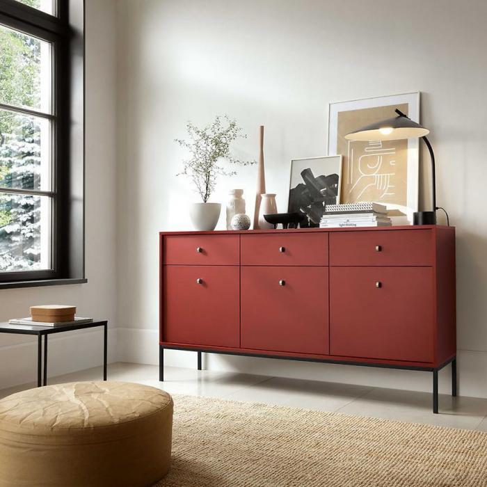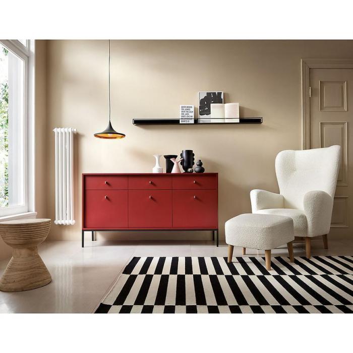 Komoda Mono to nowoczesny mebel do pokoju dziennego lub salonu. Wpasuje się w wiele aranżacji w nowoczesnych wnętrzach jak również we wnętrzach klasycznych. Szafka posiada szuflady i drzwiczki dzięki czemu ma łatwy dostęp do wnętrza oraz odpowiednią przestrzeń do przechowywania odzieży lub innych przedmiotów. Płyta laminowana to płyta, z której wykonano komodę. Do kompletu można dokupić inne meble z kolekcji.