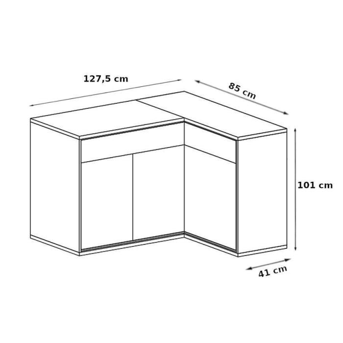 Szerokość (cm): 127,5 x 85; nogi za dodatkowa opłata 3323897; w szafie opcja dodatkowych półek i przegrody; opcja LED blat; opcja LED półki