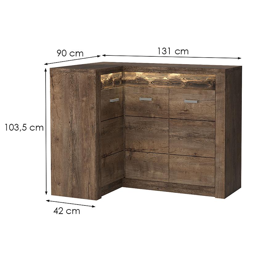 Komoda narożna Indianapolis to nie tylko praktyczne rozwiązanie przechowywania, ale również piękny element dekoracyjny, który dodaje klasy i stylu Twojemu wnętrzu. Dzięki swojej trwałej konstrukcji, wyjątkowemu wyglądowi i pojemności, ta komoda jest nie tylko funkcjonalna, ale również estetycznie atrakcyjna.