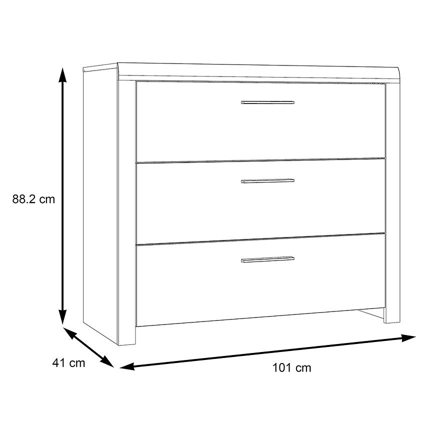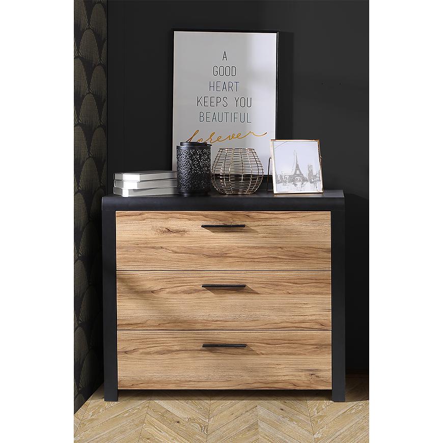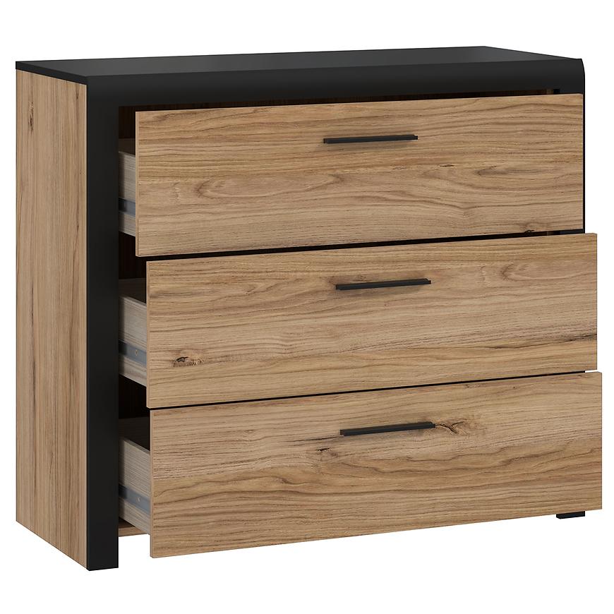 Doskonałym wyborem do pokoju dziennego będzie nowoczesna komoda w kolorze dąb catania z serii Nemezy. Posiada trzy szuflady, dzięki czemu ma łatwy dostęp do wnętrza. Komoda dopełni wystrój sypialni, salonu, czy przedpokoju, stanowiąc wygodne miejsce do przechowywania mniejszych i większych rzeczy. Mebel do samodzielnego montażu.
