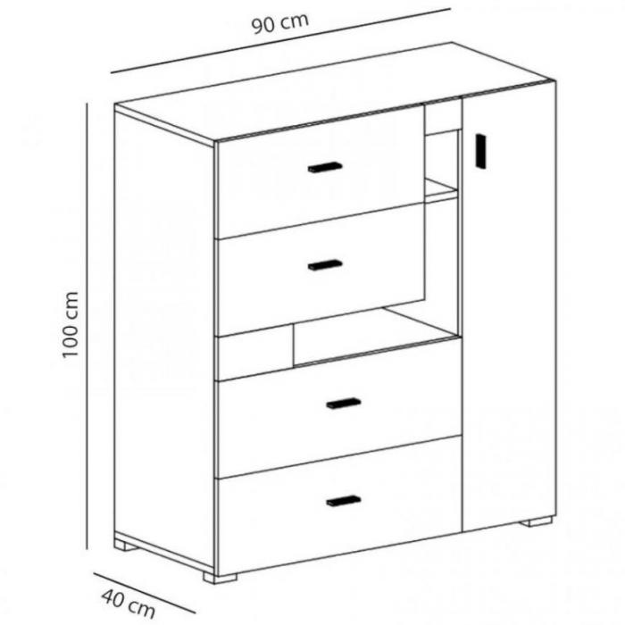 Komoda Next to mebel idealny do pokoju dziecięcego i młodzieżowego. Wpasuje się w wiele aranżacji w nowoczesnych wnętrzach jak również we wnętrzach klasycznych. Szafka posiada szuflady i drzwiczki dzięki czemu ma łatwy dostęp do wnętrza oraz odpowiednią przestrzeń do przechowywania odzieży oraz innych przedmiotów. Płyta laminowana to płyta, z której wykonano komodę. Do kompletu można dokupić inne meble z kolekcji.