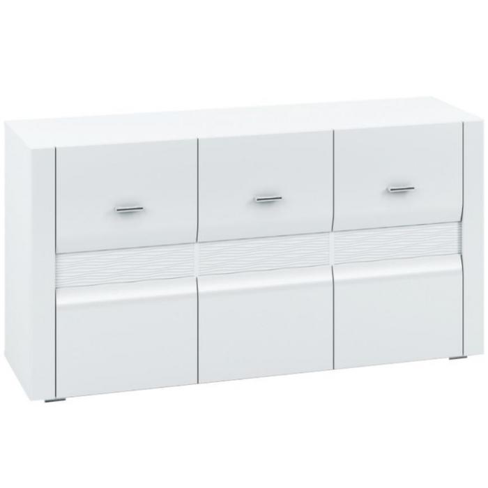 Biała komoda Arko to mebel idealny do pokoju dziennego lub salonu. Kolor mebla wpasuje się w wiele aranżacji w nowoczesnych wnętrzach jak również we wnętrzach klasycznych. Szafka posiada drzwiczki dzięki czemu ma łatwy dostęp do wnętrza oraz odpowiednią przestrzeń do przechowywania odzieży lub innych przedmiotów. Płyta laminowana to płyta, z której wykonano komodę. Do kompletu można dokupić inne meble z kolekcji.