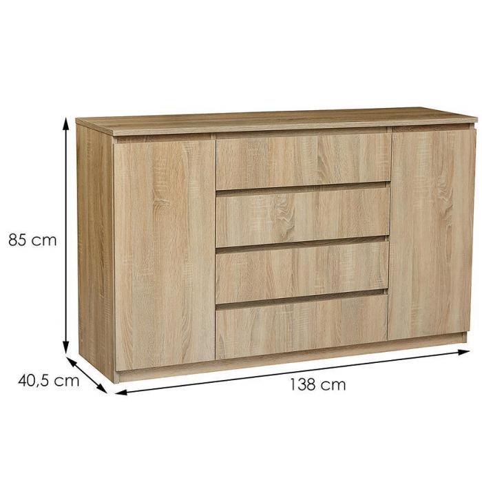 Doskonałym wyborem do pokoju dziennego, czy młodzieżowego będzie komoda w kolorze dąb sonoma, materiał wykonania to płyta laminowana. Komoda jest dwudrzwiowa i posiada cztery szuflady dzięki czemu ma łatwy dostęp do wnętrza. Komoda dopełni również wystrój salonu, czy przedpokoju, stanowiąc wygodne miejsce do przechowywania mniejszych i większych rzeczy. Mebel do samodzielnego montażu.