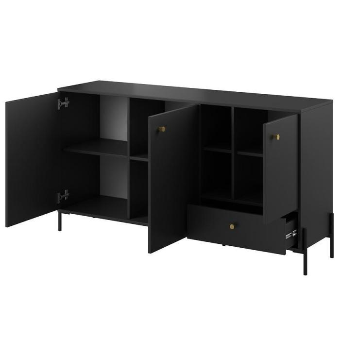 Komoda Notte w kolorze antracyt to przede wszystkim nowoczesność i funkcjonalność w jednym. Mebel doskonale sprawdzi się w każdym salonie. Materiał wykonania to płyta wiórowa laminowana. Komoda posiada szufladę oraz trzy szafki dzięki czemu ma łatwy dostęp do wnętrza. Wygląd mebli jest nowoczesny, a zarazem uniwersalny. Mebel będzie pasował do wielu pomieszczeń jak np. jadalni czy pokoju dziennego. Meble jest bardzo pojemny, dlatego sprawdzi się w każdym pomieszczeniu - zarówno w sypialni, pokoju dziennym, młodzieżowym, czy też salonie. Mebel do samodzielnego montażu.