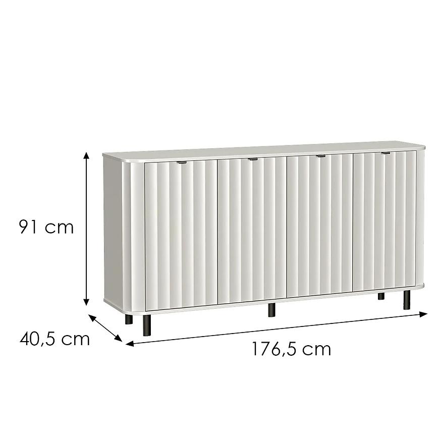 Komoda Novado to idealne rozwiązanie dla osób ceniących nowoczesny styl, funkcjonalność i wysoką jakość wykonania. Czterodrzwiowa konstrukcja z półkami zapewnia dużą przestrzeń do przechowywania, idealną do salonu, sypialni czy przedpokoju.
