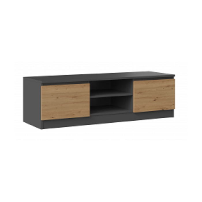 Dzięki wymiarom 120 × 40 × 36 cm (sz./gł./wys.) szafka doskonale sprawdzi się zarówno w większym salonie, jak i w przestrzeni typu open-space. Można ją zestawić z minimalistyczną komodą lub szafkami z tej samej kolekcji, by stworzyć spójny zestaw meblowy. Idealna pod telewizor LED lub OLED, z konsolą lub dekoderem – z powodzeniem pomieści sprzęt i akcesoria, jednocześnie utrzymując czysty wygląd. Kolorystyka antracytu i dębu artisan sprawia, że mebel dopasowuje się do zarówno jasnych, jak i ciemniejszych ścian – jest uniwersalny, a zarazem wyróżniający się.