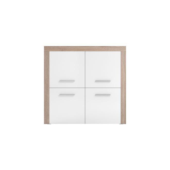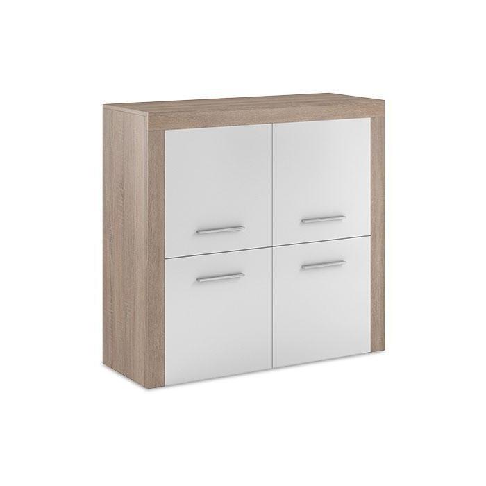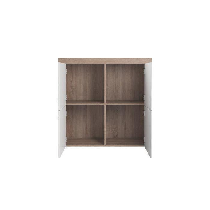Komoda One to mebel idealny do pokoju dziennego, salonu lub sypialni. Kolor mebla dąb sonoma/biały wpasuje się w wiele aranżacji w nowoczesnych wnętrzach jak również we wnętrzach klasycznych. Szafka posiada drzwiczki dzięki czemu ma łatwy dostęp do wnętrza oraz odpowiednią przestrzeń do przechowywania odzieży lub innych przedmiotów. Płyta laminowana o gr. 16 mm to płyta, z której wykonano komodę. Do komody należy domówić kpl. frontów.
