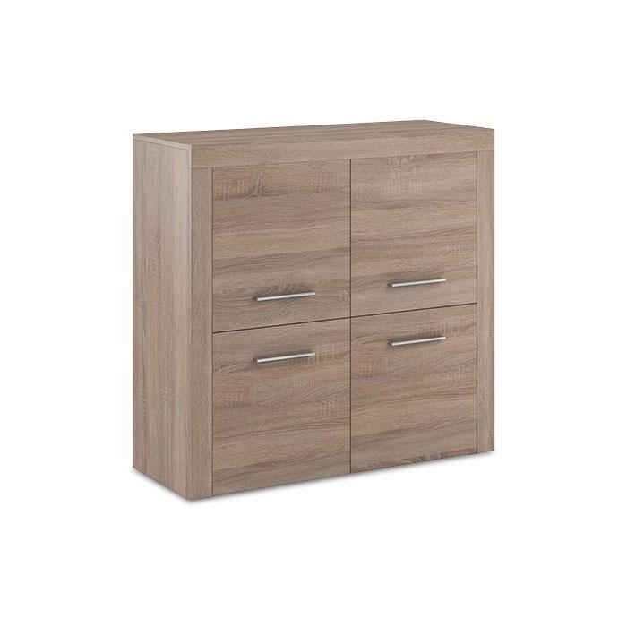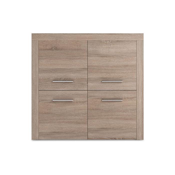 Komoda One to mebel idealny do pokoju dziennego, salonu lub sypialni. Kolor mebla dąb sonoma wpasuje się w wiele aranżacji w nowoczesnych wnętrzach jak również we wnętrzach klasycznych. Szafka posiada drzwiczki dzięki czemu ma łatwy dostęp do wnętrza oraz odpowiednią przestrzeń do przechowywania odzieży lub innych przedmiotów. Płyta laminowana o gr. 16 mm to płyta, z której wykonano komodę. Do komody należy domówić kpl. frontów.
