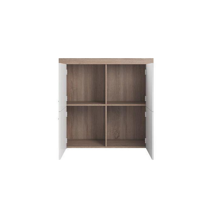 Jeśli szukasz komody o pojemnych półkach, w których zmieści się zarówno odzież, jak i elementy zastawy stołowej, wybierz komodę One 3. Ten stylowy i elegancki mebel dzięki swoim kompaktowym rozmiarom (110x42x105 cm) zmieści się w każdym wnętrzu, a uniwersalna konstrukcja sprawia, że sprawdza się jako komoda do salonu, sypialni, a nawet pokoju dziecięcego. Komoda One 3 wyróżnia się ponadto oryginalnym, ale zarazem ponadczasowym połączeniem kolorystycznym: korpus utrzymany w kolorze dębu sonoma i białe błyszczące fronty nigdy nie wychodzą z mody! Mebel został wykonany z płyt laminowanych o grubości 16 mm, dzięki czemu jest wytrzymały i odporny na uszkodzenia. Dodatkowo, łatwo go utrzymać w czystości.