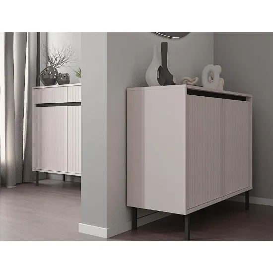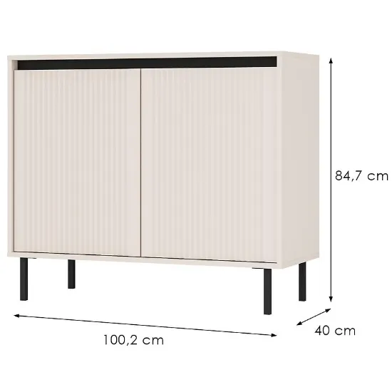 Komoda Osaka to elegancka i nowoczesna propozycja, która idealnie wpisuje się w minimalistyczne wnętrza i dodaje im subtelnego, a zarazem przytulnego charakteru. Wykonana z dbałością o detale, łączy w sobie funkcjonalność i estetykę, które są nieodzowne w nowoczesnych aranżacjach. Dwudrzwiowa konstrukcja komody sprawia, że jest praktyczna i pojemna, umożliwiając przechowywanie zarówno drobnych akcesoriów, jak i większych przedmiotów, dzięki czemu utrzymanie porządku staje się znacznie prostsze.