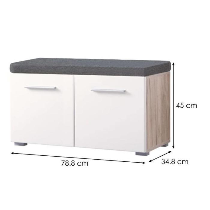 Szafka na buty z miękkim siedziskiem jest idealnym rozwiązaniem do przechowywania obuwia. Miękkie siedzisko na górze sprawia, że możesz wygodnie ubierać i zdejmować buty. Ponadto, jej elegancki design doskonale komponuje się z pozostałymi elementami kolekcji.