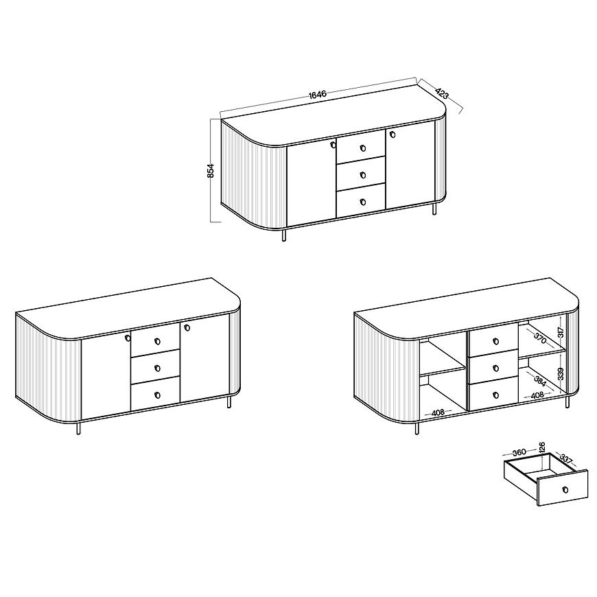Komoda Ovalio 823 2D 3S Dąb Cremona to elegancki mebel, który łączy nowoczesny design z funkcjonalnym przechowywaniem. Jej wymiary — szerokość 164,6 cm, wysokość 85,4 cm, głębokość 42,3 cm — oferują dużą przestrzeń do organizacji przedmiotów codziennego użytku. Mebel należy do kolekcji OVALIO, wyróżniającej się minimalistycznym stylem i harmonijną formą.